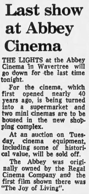| Theatre | Abbey Cinerama |