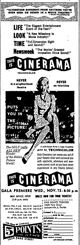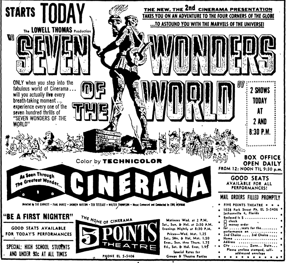 | Cinerama film formats shown | 3-strip and 70mm |