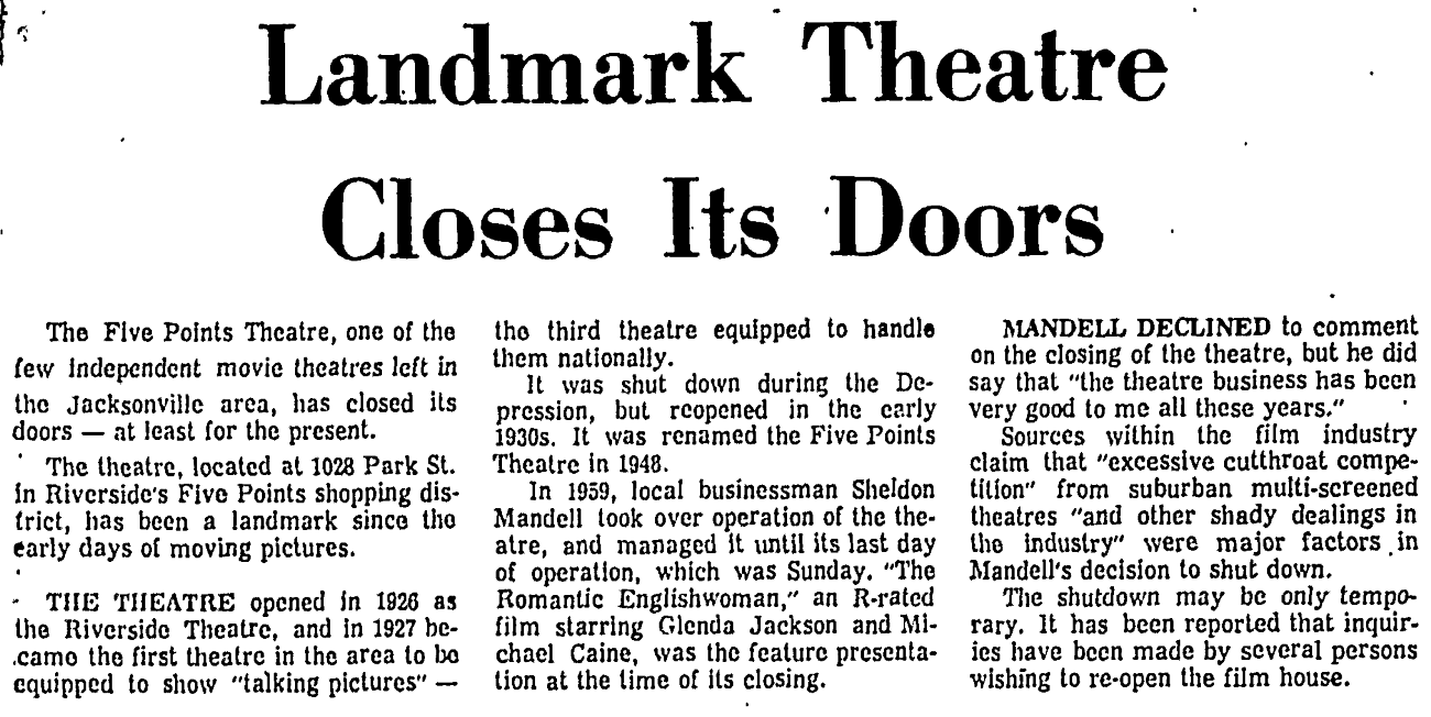 | Theatre | 5 Points AKA Riverside AKA Sun-Ray |