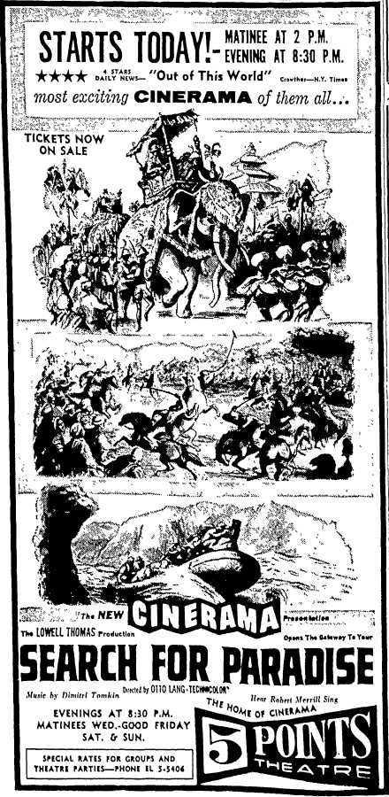 | Cinerama film formats shown | 3-strip and 70mm |